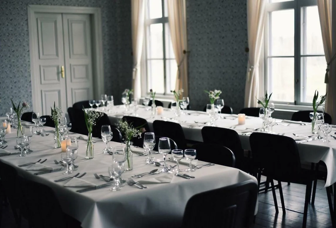 The restaurant consists of a part with reception, café and buffet. Then there are two dining rooms, the green and the blue with seating for 35 guests. Here we serve dinner to our pre-booked guests. The lunch buffet and café are open to all. We have full rights.