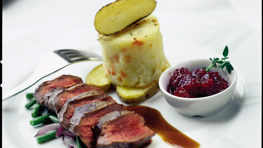 The restaurant, located in the current main building from 1818, is only a few meters from the hotel.